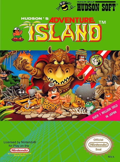 Adventure Island - Master Higgins somehow pissed off the entire jungle with his wayward skateboarding antics.