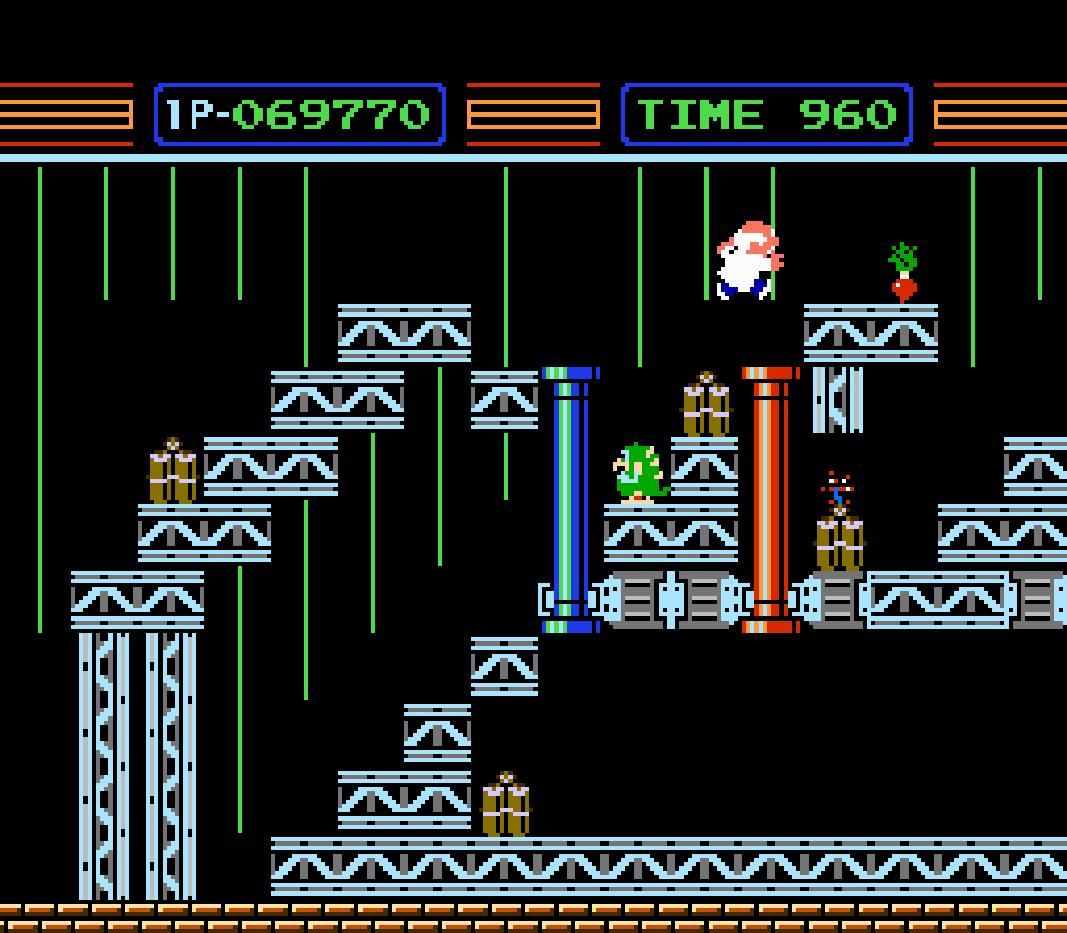 If you want to experience Gyromite sans R.O.B. (you monster), find a friend willing to hold the second controller while you control the Professor. Let them do the grunt work by pressing the ‘A’ and ‘B’ buttons to lower the red and blue columns at the appropriate time, and voila, Gyromite is a perfectly cromulent puzzle platformer. Just… make sure your friend won’t squash the Professor with the columns. Relationships have been ruined that way.