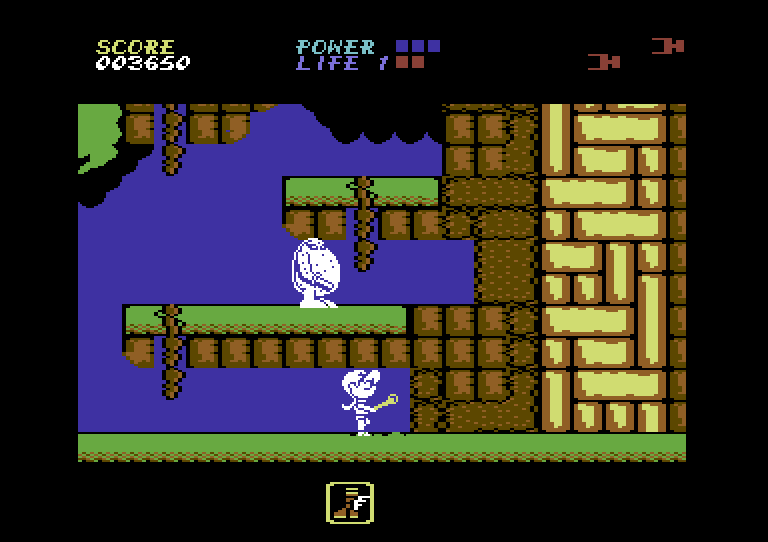 Athena’s scantily clad and ill-prepared. A hearty kick is her initial weapon, although she does eventually obtain swords, hammers, billy clubs, bow and arrows, and other instruments of destruction. Thankfully, she can also find armor pieces to protect her body, although they fall off if she’s touched by an enemy. Armor is more commonly found in blocks that Athena can break with her weapons.