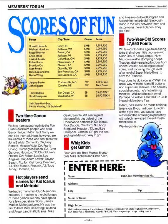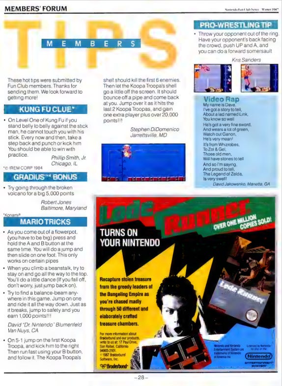 As the Nintendo Fun Club News later morphed into Nintendo Power, this beloved column would stick around and expand. Can’t argue with any of these choices, although I imagine Mike Tyson’s Punch-Out!! might kick Pro Wrestling off of the Top 5 in the next issue.