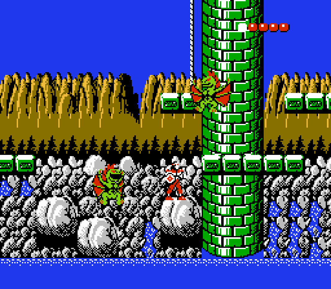 These items are critical. Rygar’s Diskarmor is a loyal friend, but he can’t move forward without the grappling hook, the wind pulley, or the crossbow. If he collects enough Mind Points, he can boost his strength, lengthen his grappling hook, or refill his health. The more enemies he fights, the stronger he becomes, the more life he acquires. Leveling up and grinding were novel, forward-thinking mechanics for an action platformer in 1987, but Rygar doesn’t know about any of that. He’s doing what’s required of him, and it feels right.