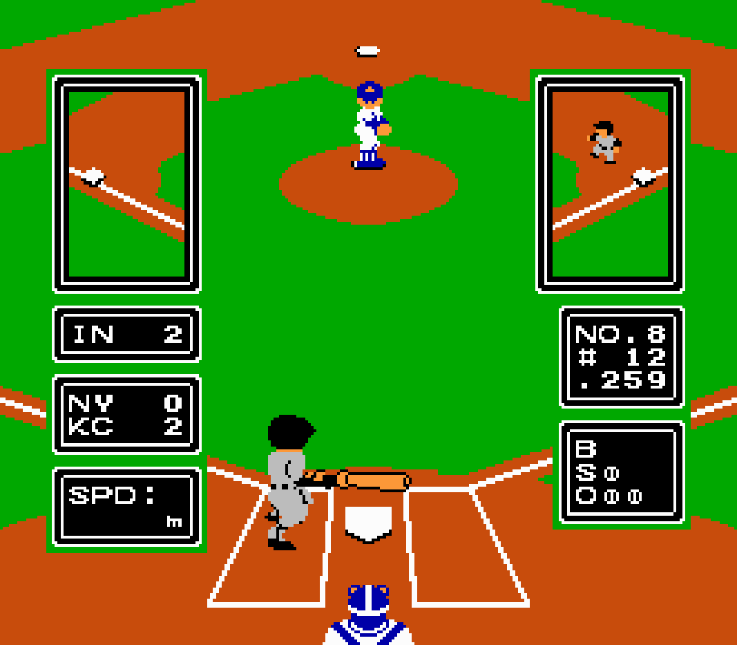 Major League Baseball is licensed by the MLB, but not the MLBPA, which means there are no official player names in the roster. Each player’s player numbers and stats are present, though, so technically, Alvin Davis is there in spirit, if not in name or form. I couldn’t find a reason why Major League Baseball didn’t acquire the MLBPA license, but I do have two theories. 1) all the player sprites look squatty, ridiculous and identical to each other. No self-respecting player wants to put their name on a Fisher-Price baseball figure. 2) More likely, LJN only had money for one license, not two.